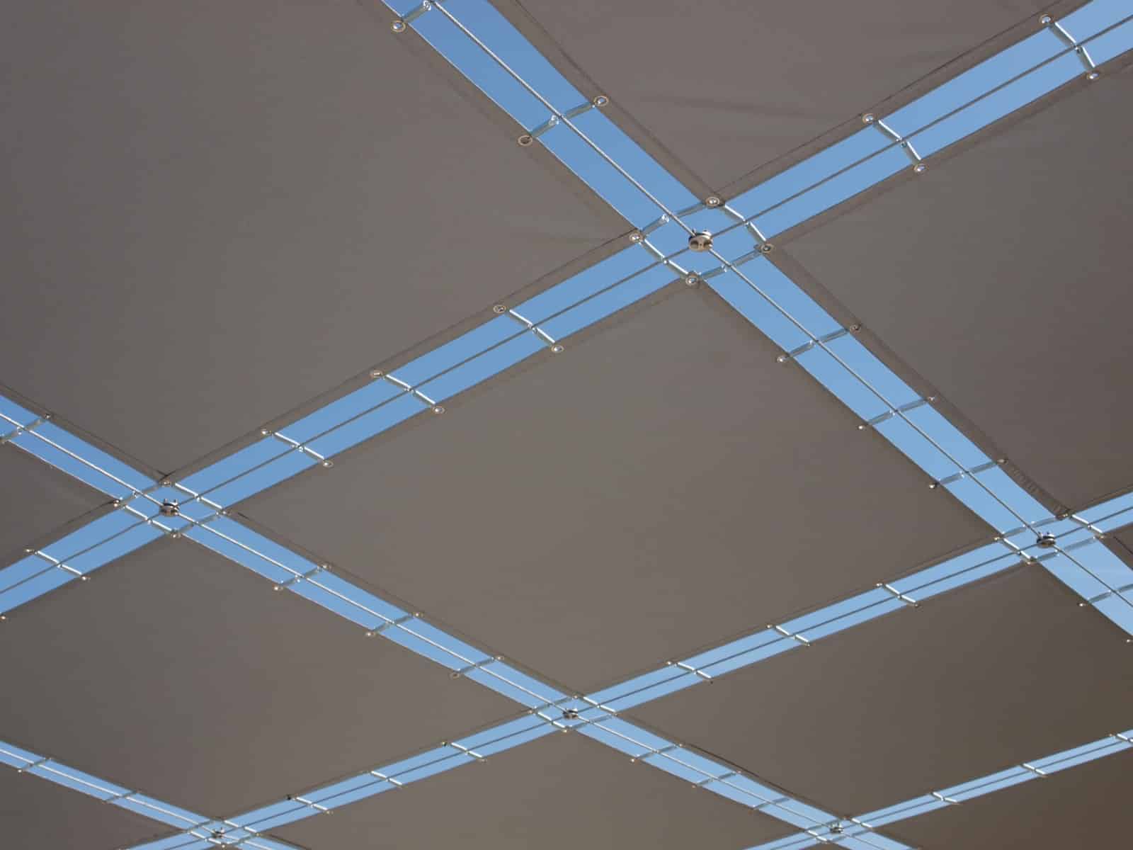 Es un sistema estructural compuesto por un entramado de cables que convierte el techo en una retícula, permitiendo la fijación y tensado de lonas técnicas de forma segura y estable.